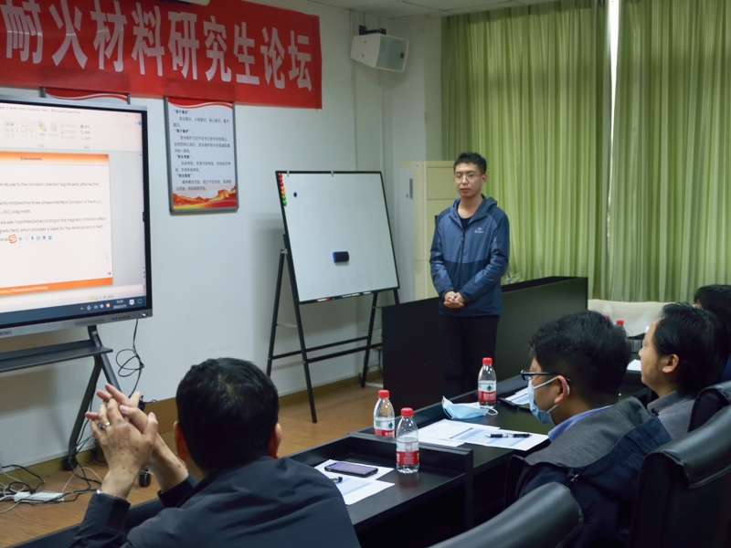 活动最后由韩兵强教授进行总结,同学们的汇报很精彩,科研成果丰硕,PPT做的很精美,但部分同学仍存在不足之处,如英语表述和交流需多多训练。宣布了比赛成绩并为获奖选手颁发证书与礼品。此次学术论坛的优秀选手将代表学校参加5月份举办的第五届国际耐火材料研究生论坛。